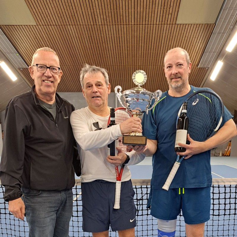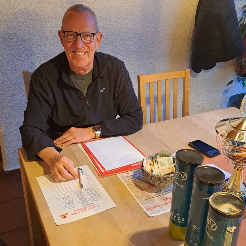 Gut in der Erfolgsspur und damit im Finale standen an diesem Abend die Doppel Alfred Gartner/Gerhard Schmidt und Wilbert Jochims/Ralf Kalkbrenner. Am Ende hieß es: Spiel, Satz, Sieg (6:3) für Jochims/Kalkbrenner. Rolf Homölle durfte seines Amtes walten und überreichte den Pokal an das siegreiche Doppel.